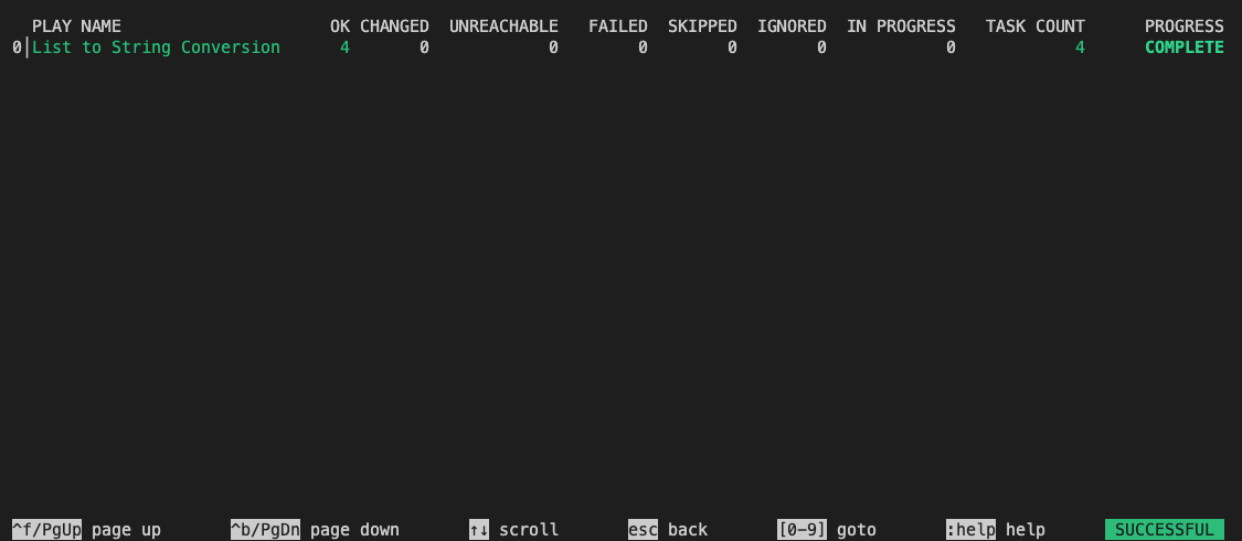 Execute the playbook with a more summarised output instead of logs and details.