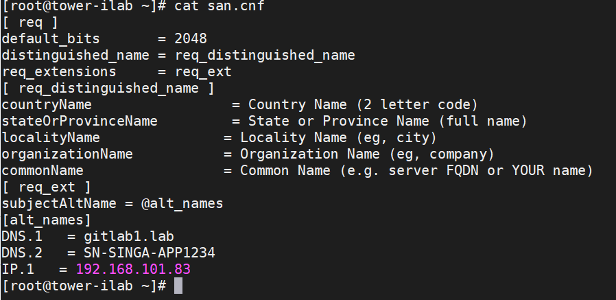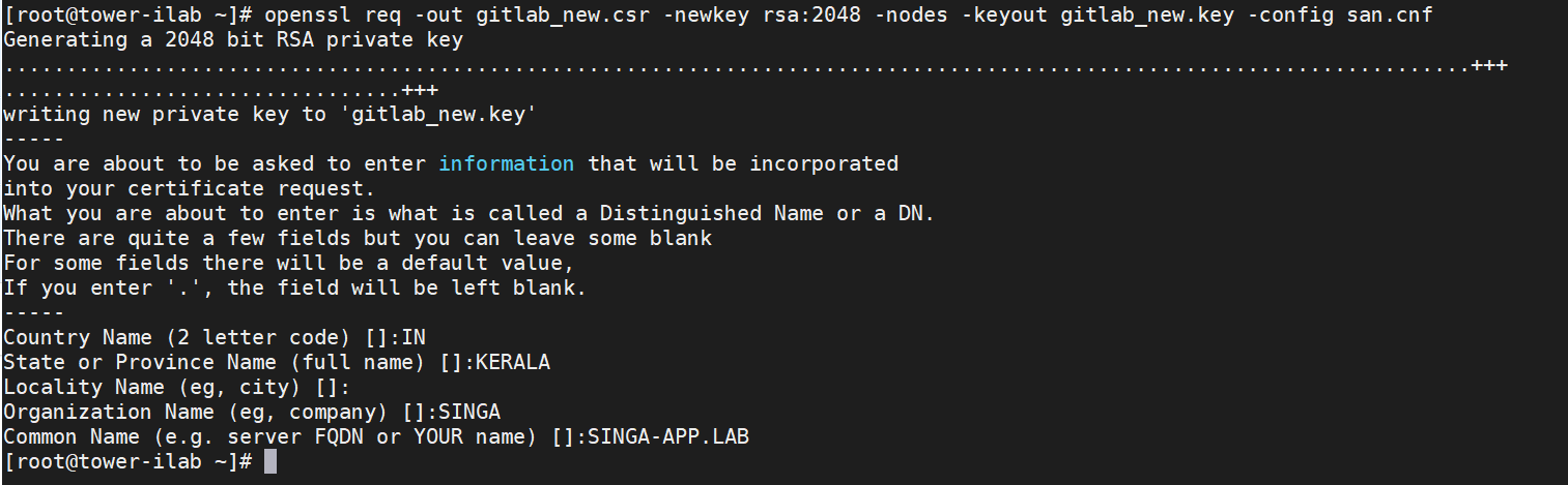 openssl req -out gitlab_new.csr -newkey rsa:2048 -nodes -keyout gitlab_new.key -config san.cnf