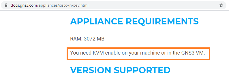 While setting up separate GNS3 VM, you need to enable KVM support for the GNS3 VM (even if you are using all in one). Because, most of the appliance need KVM support on GNS3 VM otherwise you won’t be able to import network appliance to GNS3.