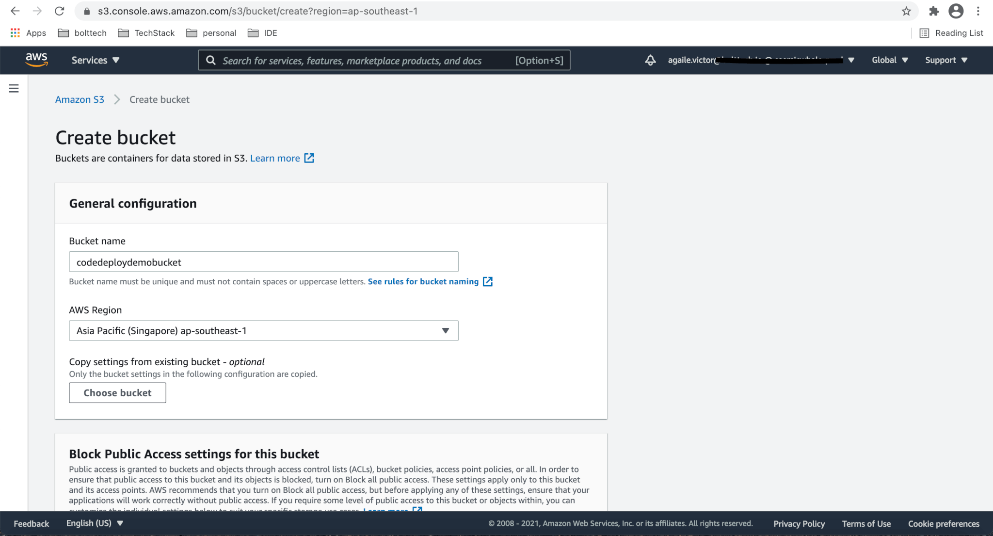 We need one S3 bucket to store the zip file of our latest code (and any other artifacts) and from there the code will be deployed.