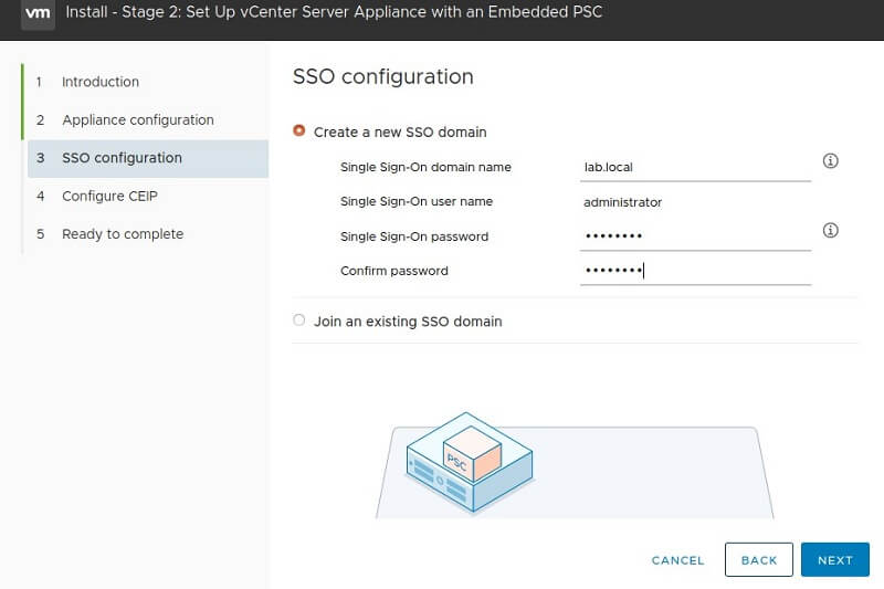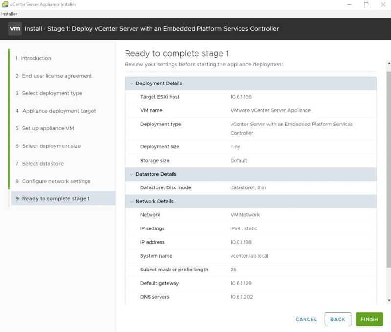Install – Stage 2: Setup vCenter Server