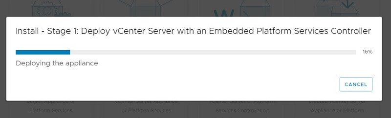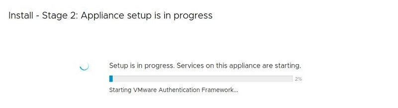 Wizard will start deploying vCenter Server Appliance as per our configuration and wait for the task to finish.