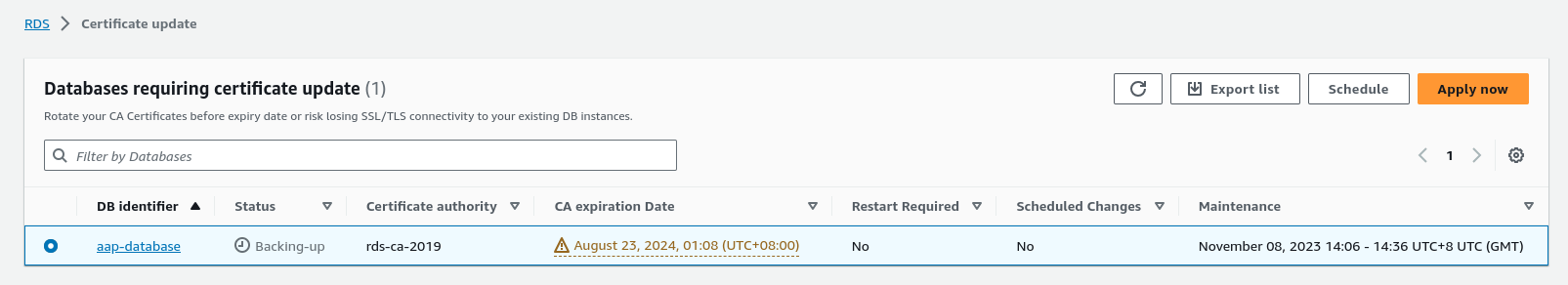 Step 4: Update the CA Certificate in RDS Instance