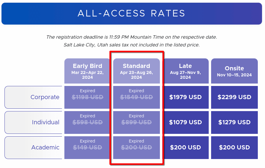 If you missed the standard pricing deadline, don’t worry! We have some exciting news for you. Discounted rates are still available for the standard tier pricing. Use the following promo codes to get up to $430 off your registration: