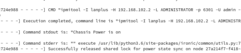 - At the same time, the installer keep connecting to the bootstrap ironic API endpoint, and it will succeed once ironic API is ready and RHOCP node will be powered on and continue the kickstart process.