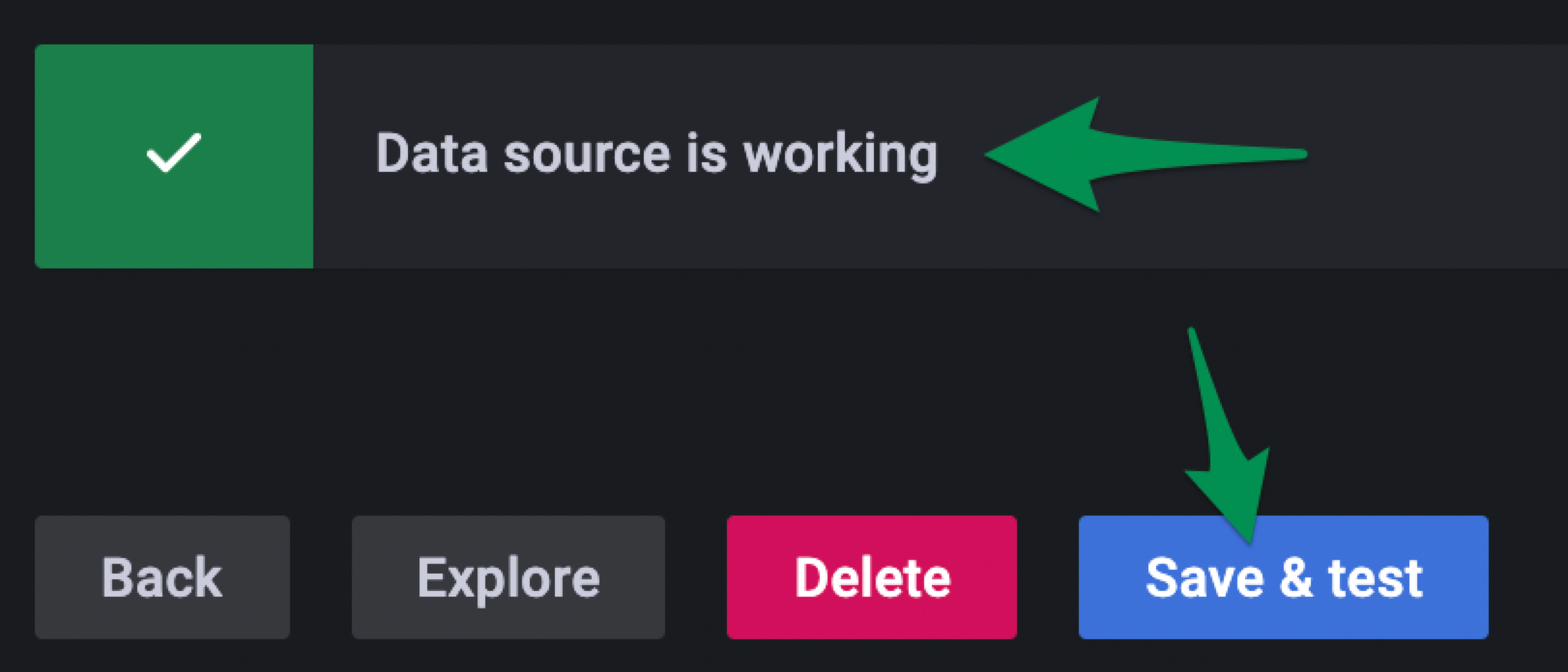 Lastly, Save & Test the data source. (Ensure the tick and Data source is working)