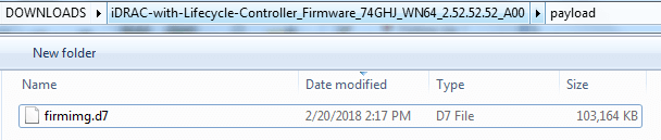 As you can see, this is a windows executable file (can run from windows OS if your server is already loaded with Windows). But, in our case there will be any OS installed and we might no have Windows installed. In that case, we can extract the firmware file from the same .exe file; just extract the .exe file (eg: iDRAC-with-Lifecycle-Controller_Firmware_74GHJ_WN64_2.52.52.52_A00.exe) and find the firmimg.d7 file inside payload folder.