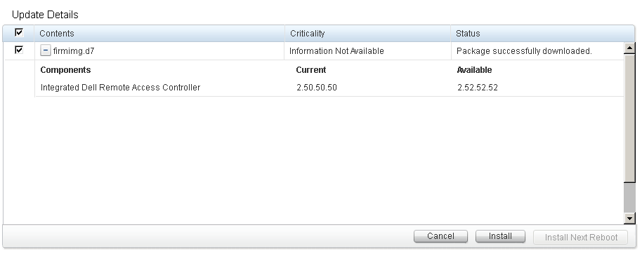 Browse for the exatracted firmimg.d7 and click upload. Once Uploaded, if the image is valid updater will show you the image name, available version, current version etc. If all okay, select the image (checkbox) and click install.